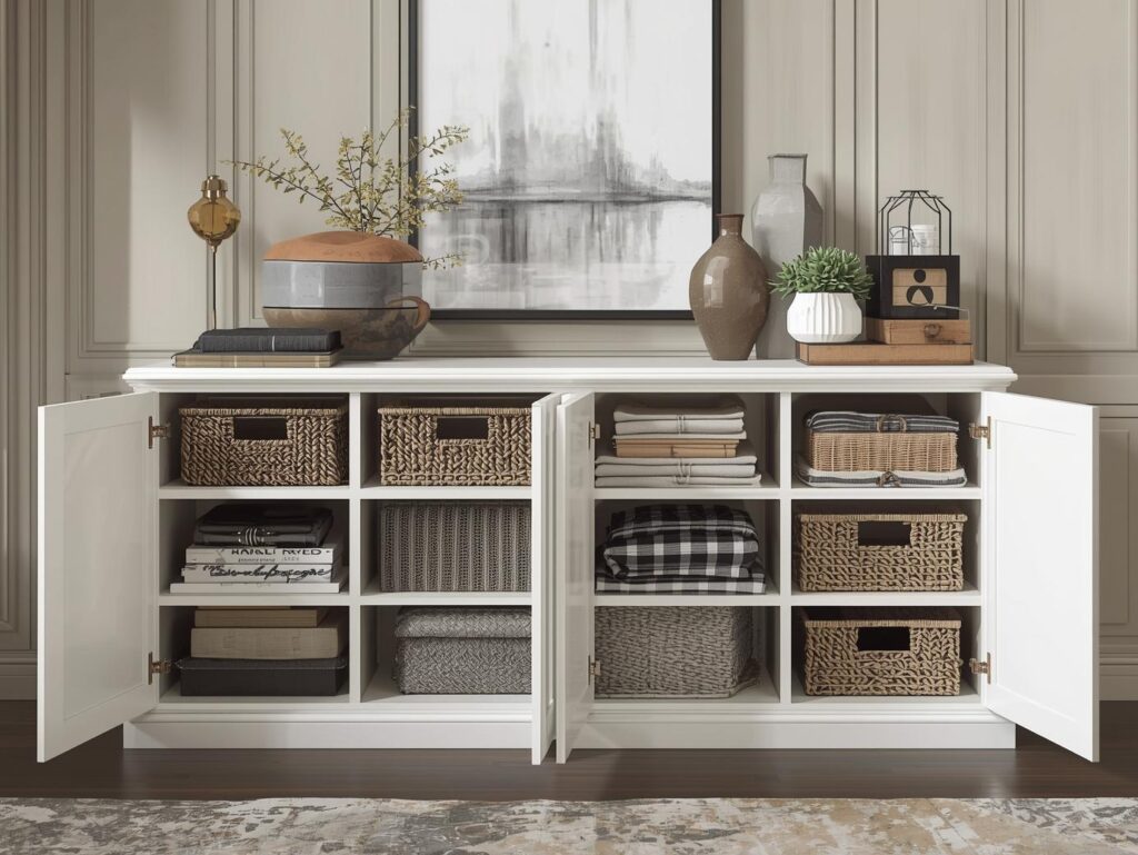 Incorporate hidden compartments in furniture or use decorative baskets and boxes to conceal clutter. Hidden storage keeps the space tidy while maintaining a cohesive aesthetic.